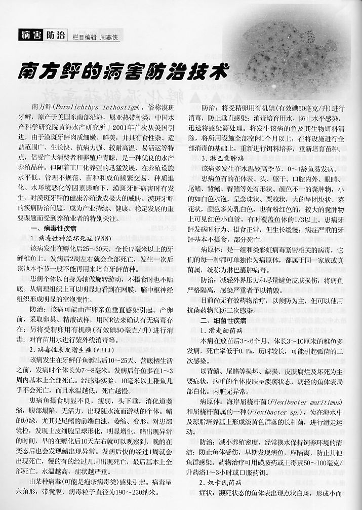 南方鲆的病害防治技术1